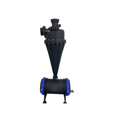 利用离心力,高效去除水流中比重较大、颗粒较粗的固体杂质1.进出主管口径:DN802.主体材质:尼龙3.流量:最大50m³/h4.连接方式:法兰连接